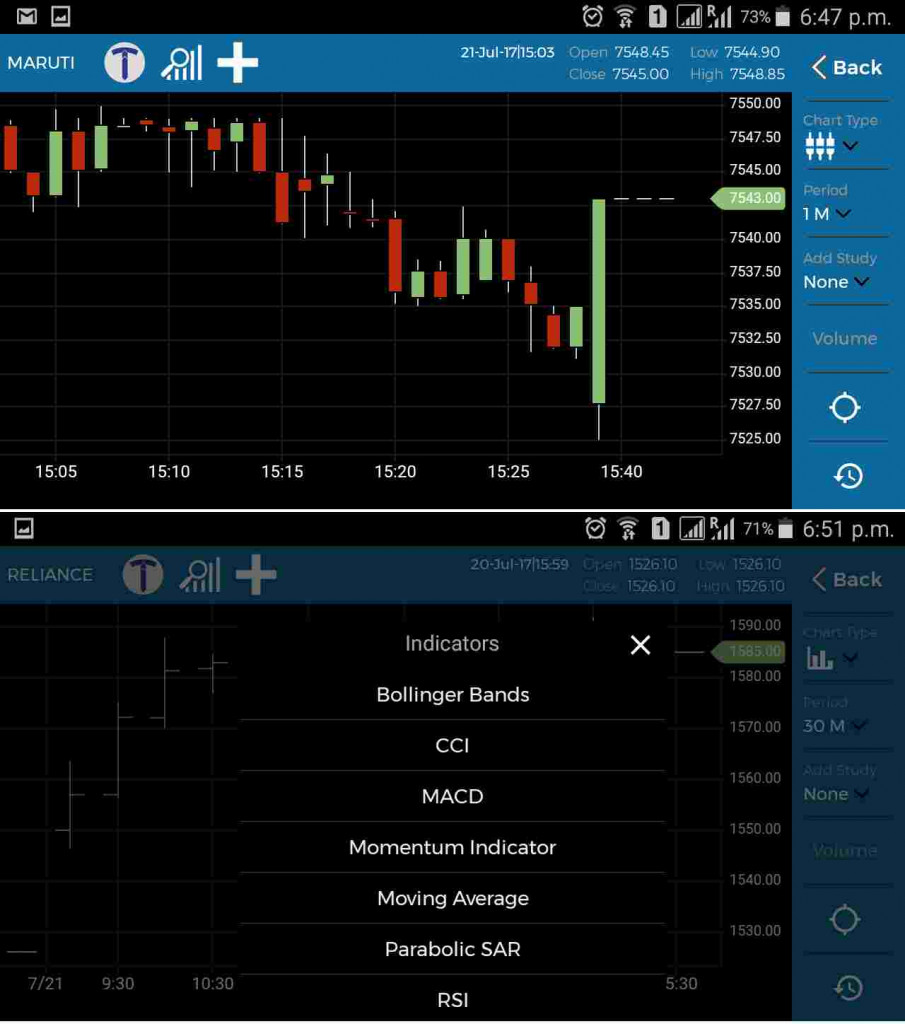 - इन्ही सब सुविधाओं के कारण यह ऐप आपको चार्टिंग, आप्शन स्ट्रेटेजीज अर्थात काल और पुट ट्रेडिंग की ऋणनीतियाँ, इत्यादि उपलब्ध करता है | आप साथ में कई अलग प्रकार के चार्ट्स जैसे की लाइन, बार, कैंडलस्टिक, इत्यादि का भी प्रयोग कर सकते हैं और कई प्रकार के अद्ध्यनो , जैसे की सीसीआई, एमऐसीडी, मोमेंटम इंडिकेटर, मूविंग एवरेज का भी इस्तेमाल कर सकते हैं |