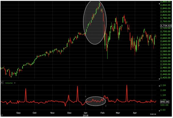 अगर मार्केट में तेजी आ रहा है, तो हम देख सकते हैं कि वॉल्यूम अपने आप बढ़ जाता है।